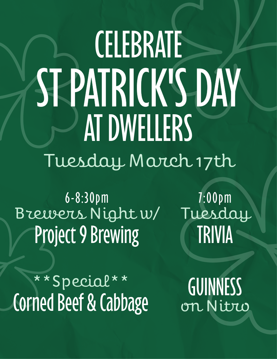 Celebrate St. Patrick’s Day at Dwellers!
